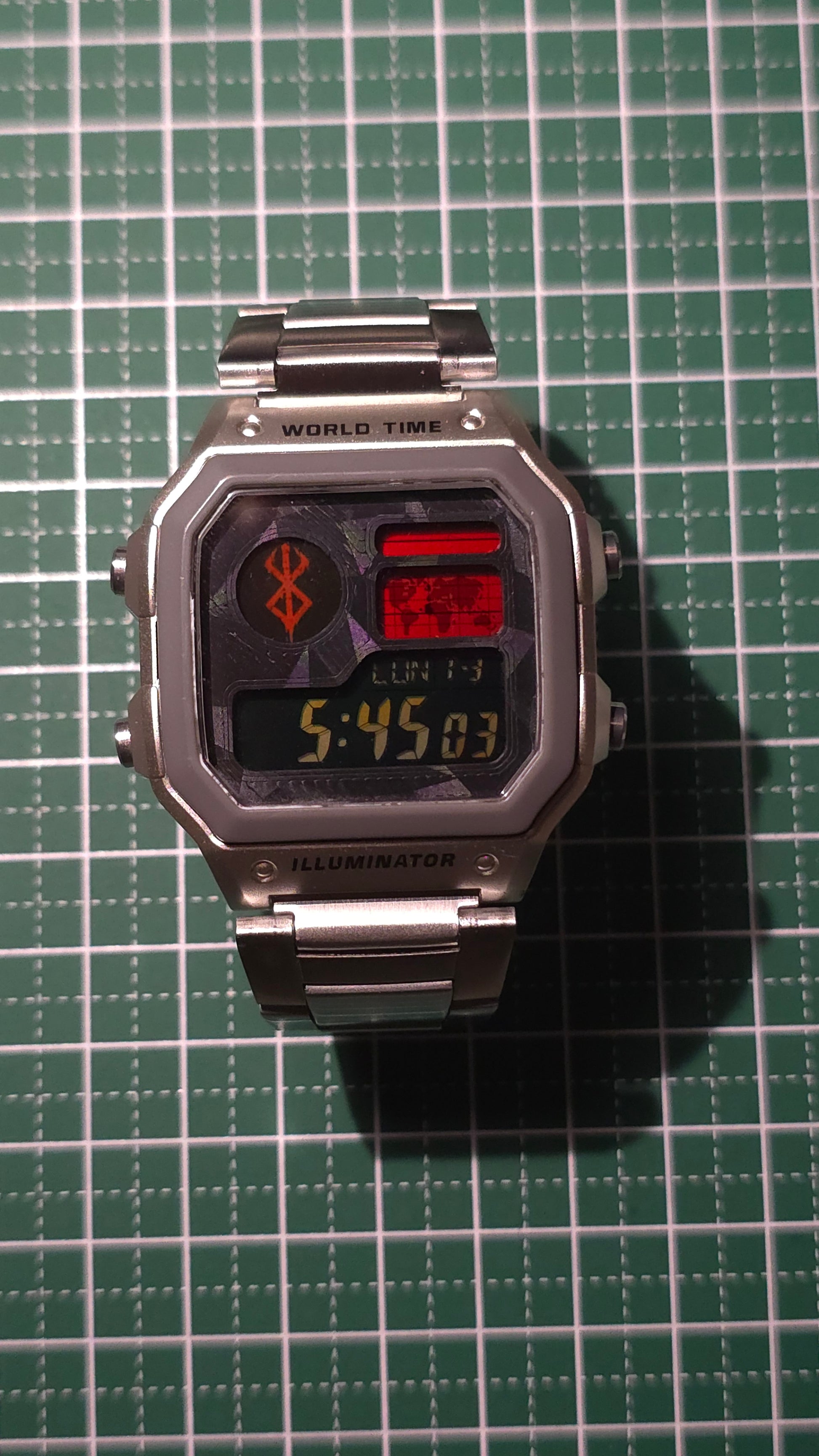 The cold steel bracelet completes the design, mirroring the brutal weight of his greatsword and the unrelenting resolve that defines Guts’ journey. A timepiece forged for those who fight against fate itself.