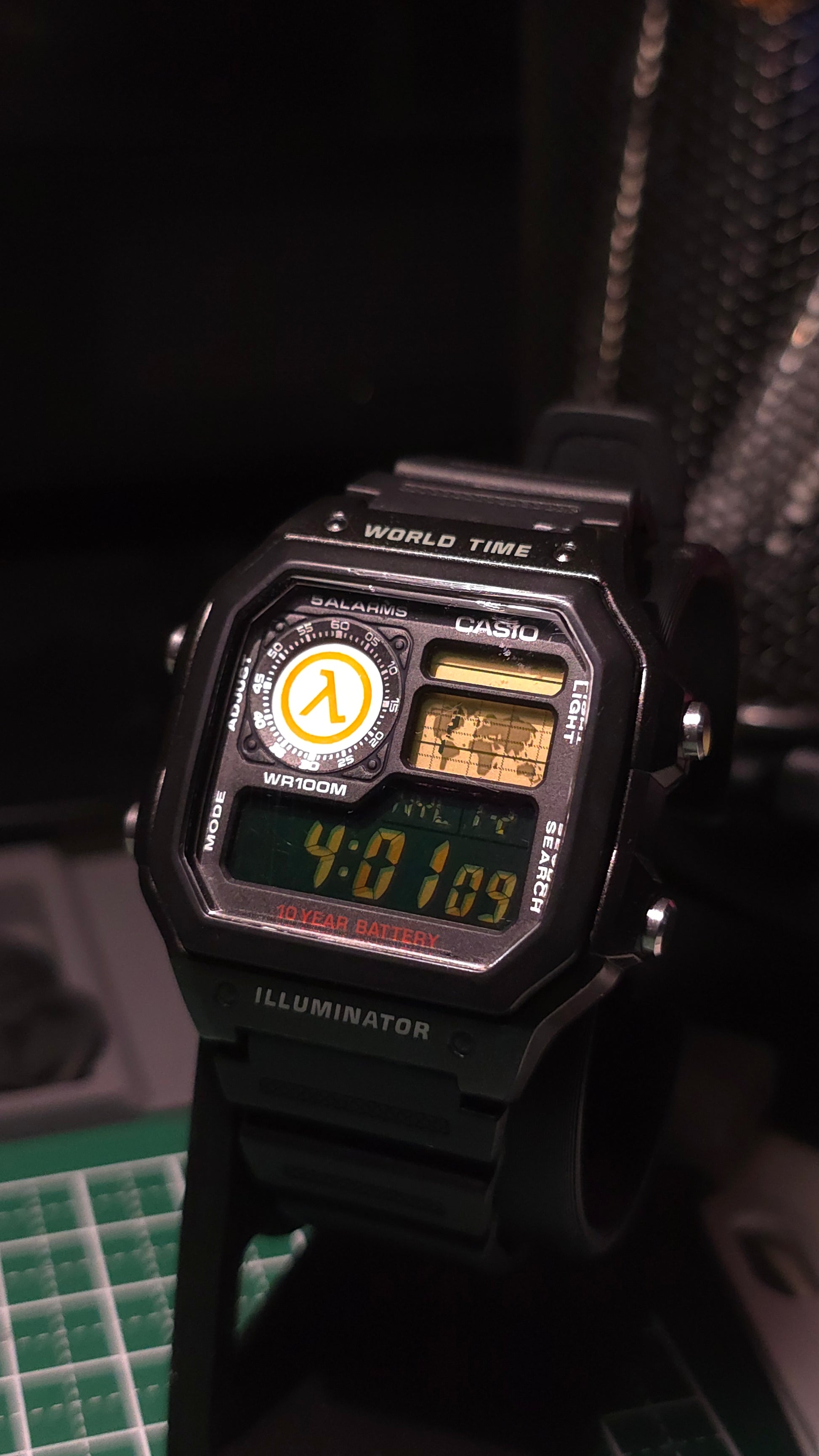 Every detail of this piece feels pulled straight from the depths of Black Mesa. The matte black body and resin strap carry the grit of a facility built to withstand the impossible. At its core, the orange lambda symbol radiates quietly. A mark of rebellion, science, and survival.