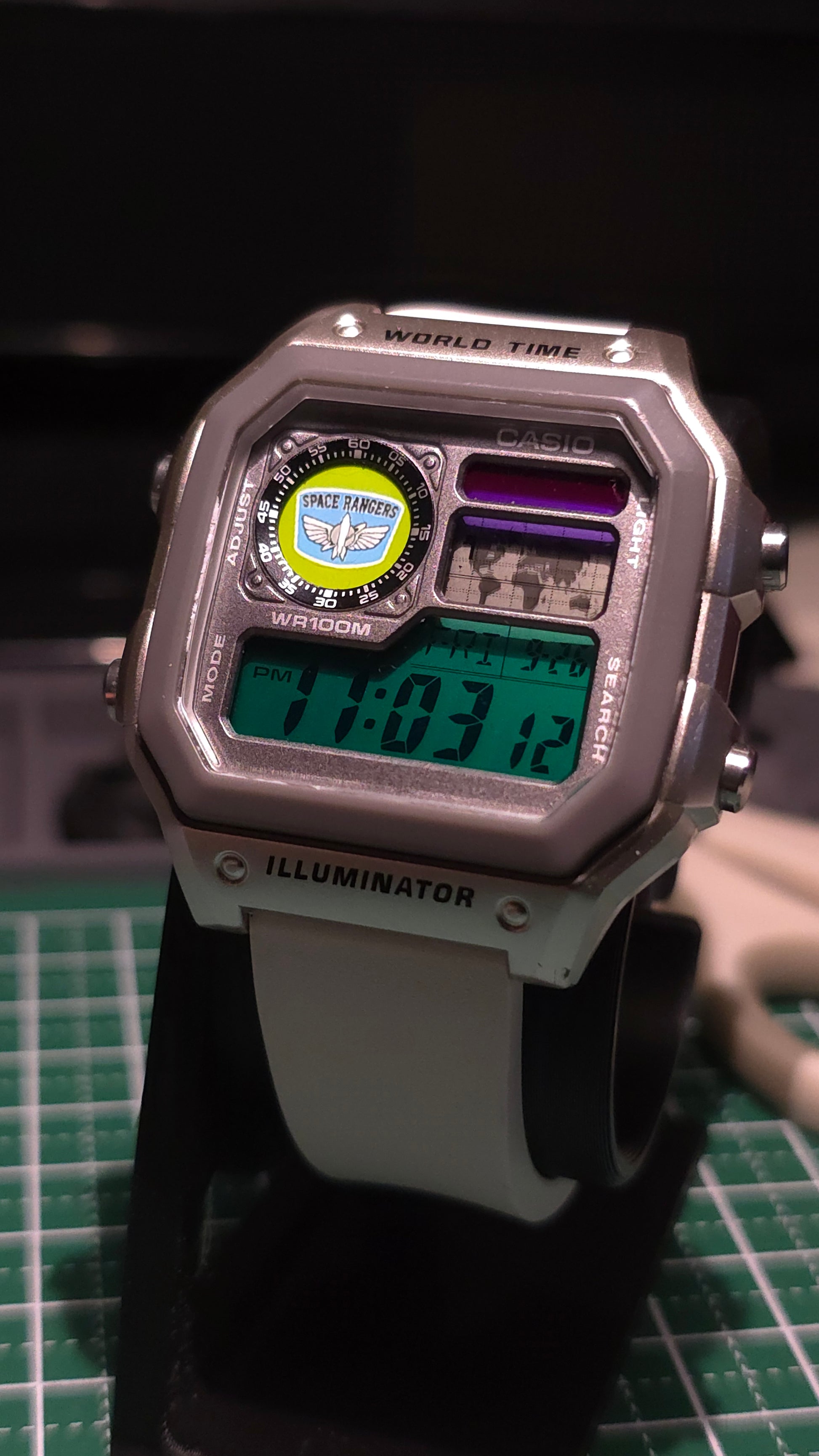 A tribute to the Space Ranger himself, this custom build pairs a silver stainless case with a crisp white resin strap, echoing Buzz’s iconic space suit. The circle window carries the Space Ranger insignia, a mark of duty and adventure.