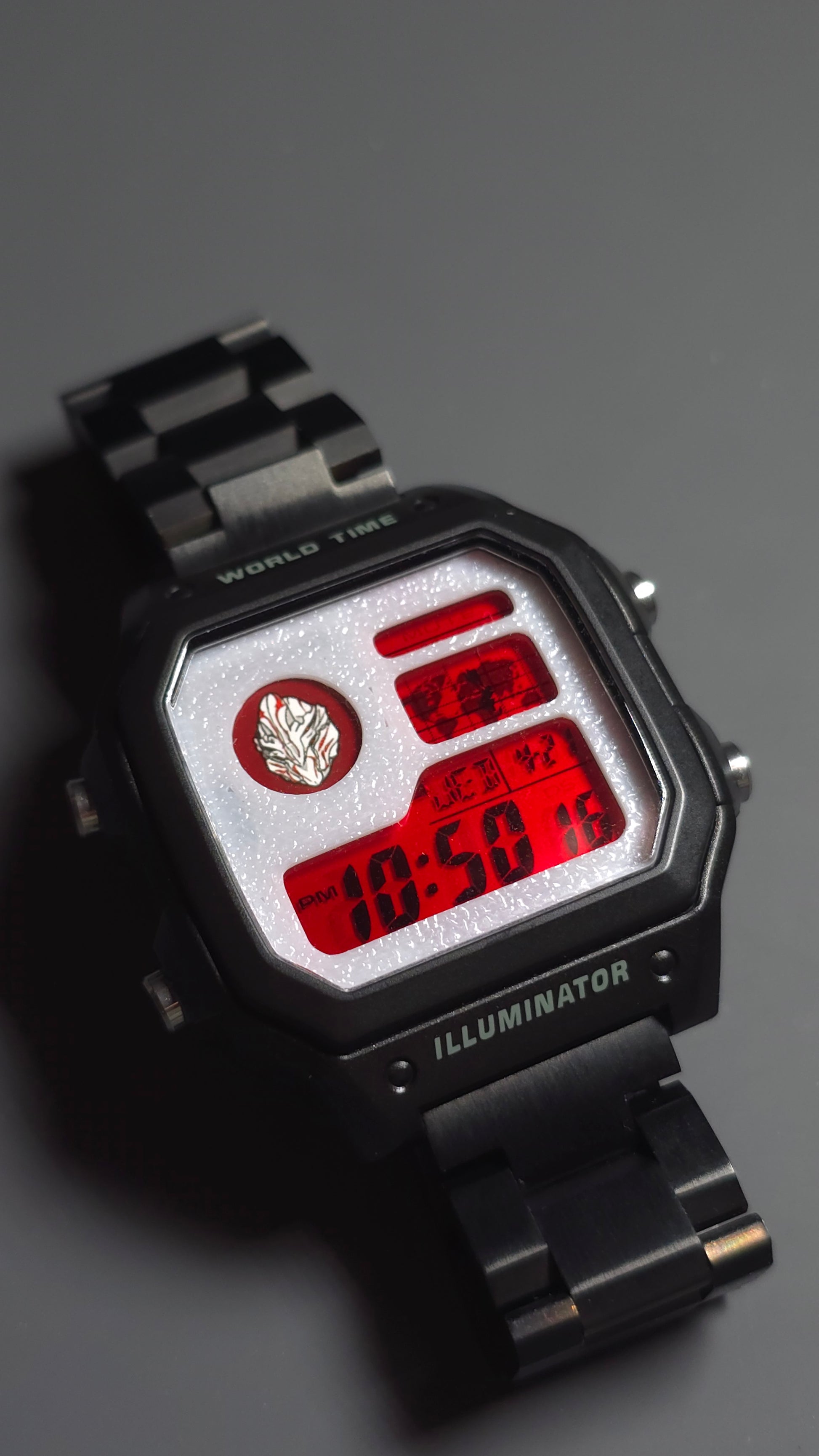 This watch carries Raven’s presence with the red lion crest burning like her aura and the black frame echoing the armor she wears when she steps through a portal. The red display feels like the calm before a storm where every choice is sharp and every move is final.