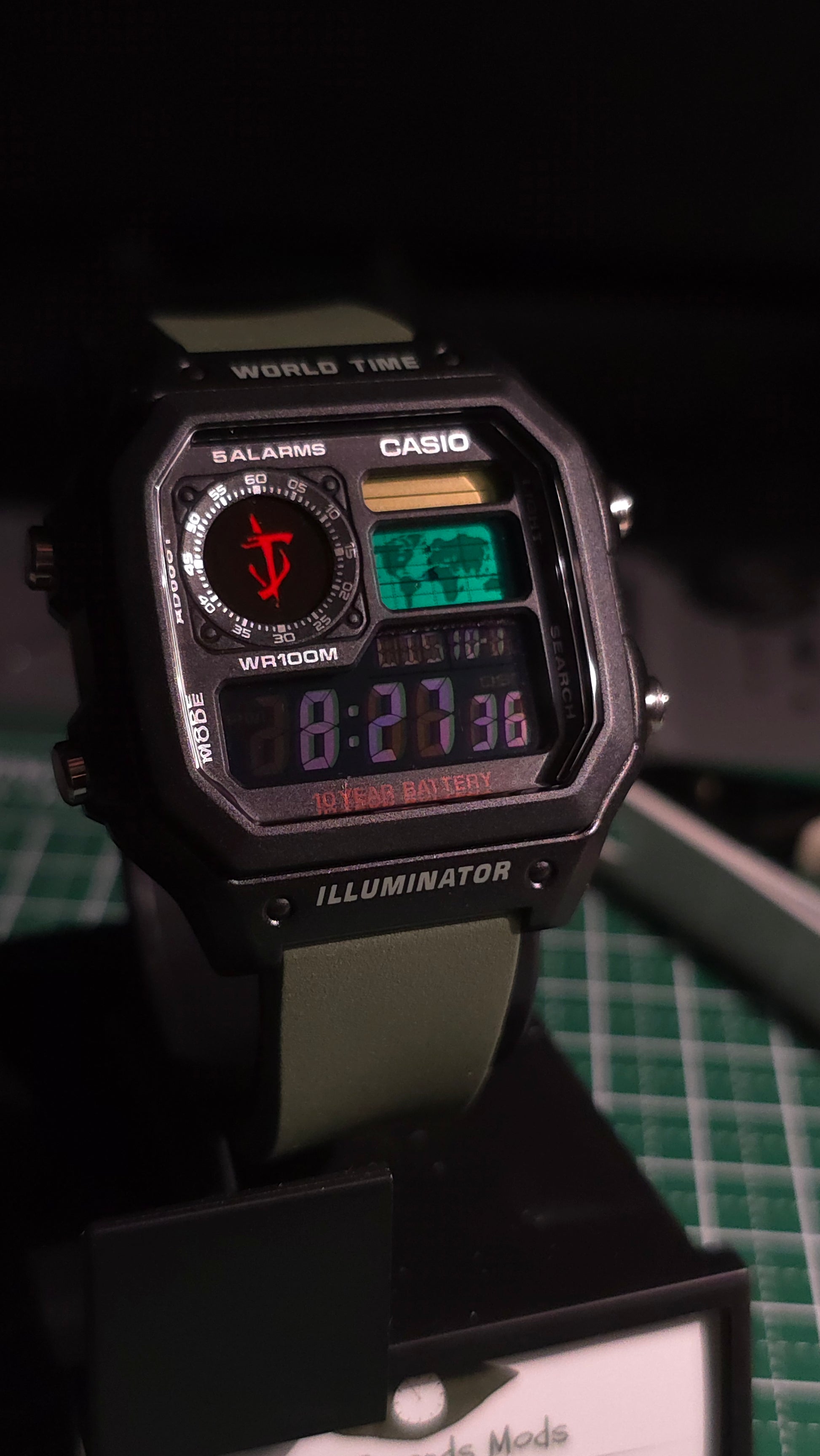 Forged in the fires of Hell, tempered by rage, this build doesn’t tell time. It hunts it. A stainless body mirrors the Slayer’s armor, green like the edge of a breached portal. The orange glow in the corner burns like the muzzle flash of an eternal fight, while the red sigil seals your pact in blood.